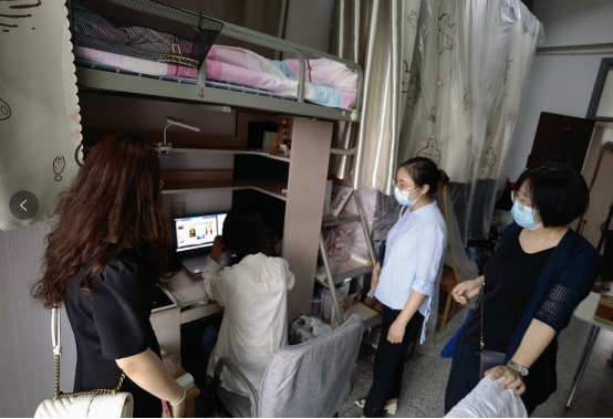 8月29日是新学期开学第一天,为确保学院各项教学工作有序开展,上午7:40学院领导、教学工作委员会、学生工作办公室相关人员深入学生宿舍,检查开学第一天线上教学开展情况。