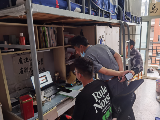 通过逐间走访,了解到同学们的学习状态整体较好,大部分学生能够严格按照上课时间,在宿舍书桌前通过平板、电脑等设备认真上课,但也存在极少数学生在上课期间仍在洗漱或在床上上课。
