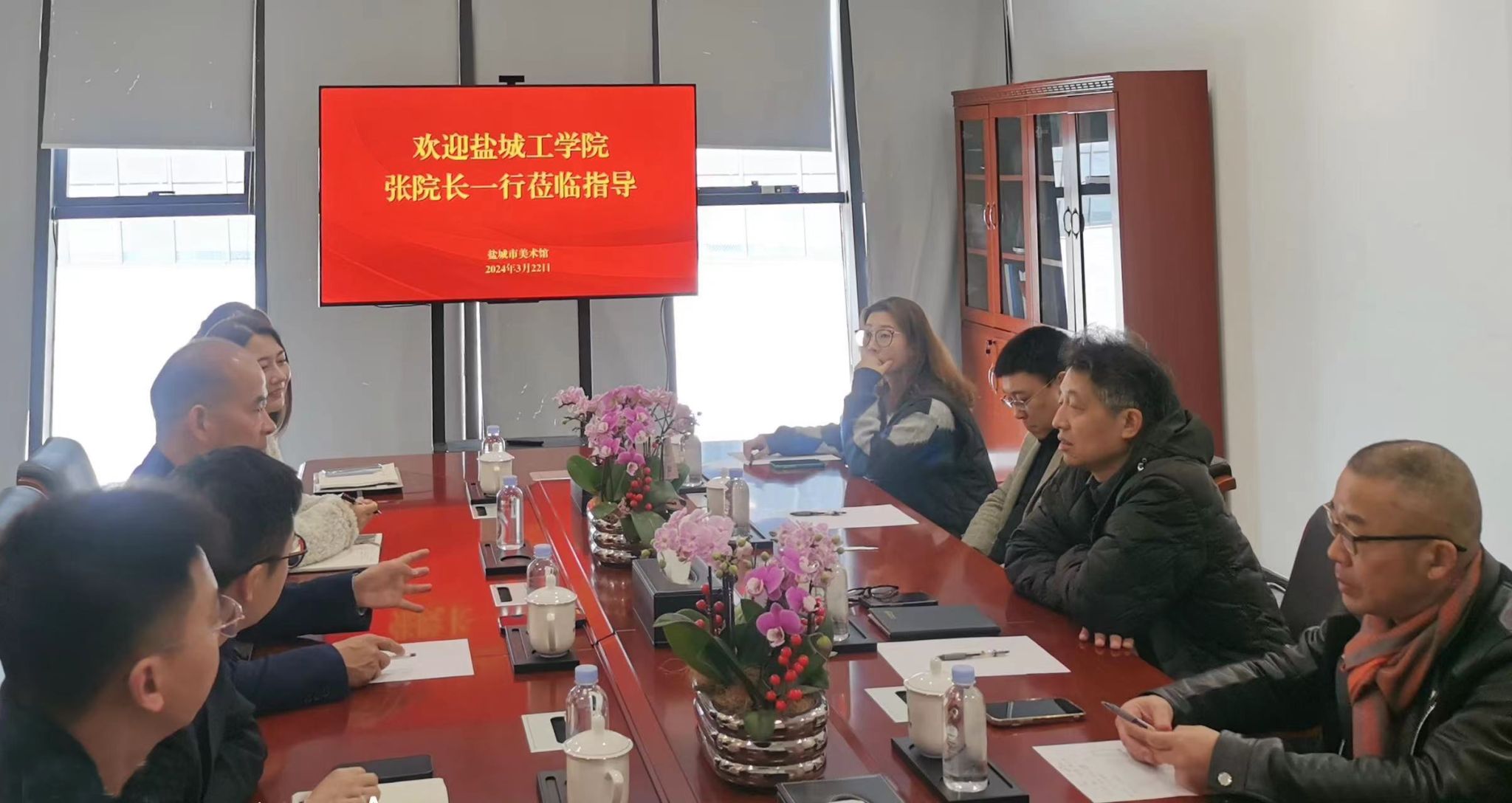 为促进毕业生更加充分、更高质量就业,继续深化馆校合作,挖掘就业资源,深化“访企拓岗”专项工作,2024年3月22日,张军院长一行5人前往盐城市美术馆进行走访调研。此次调研的主要目的包括商议学生实习就业,确定2023级硕士研究生课程作业展览以及以盐城市美术馆作为平台建立研究生工作站等事宜。吴洪春馆长、曹茂超部长在座谈中均表示,研究生工作站作为一种新型培养模式,同时也是产学研合作的重要平台,在创新型人才培养等方面具有重要作用,双方应当在原有馆校联合的机制上,积极推进人才培养、专业建设、画作展览、创新创业、项目申报、美育实践艺术城市建设等方面加大合作。