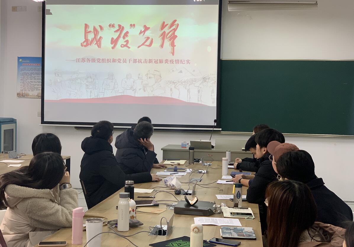 2020年度总结大会分三项议程,首先由支部书记杨滢做学生支部202年度工作总结汇报,从支部活动情况、党员发展、理论学习、工作思路和措施四个方面做了总结汇报,在场还分发了支部班子民主评议表进行对学生支部工作的民主评议,部分党员进行了交流发言;然后学院党总支副书记杨军作为支委代表发言,他希望学生党员能够在学生中发挥先锋模范作用,在思想政治表现、理论学习层面、实际业绩成果等三方面都能够不断提升自我;最后在场师生一起观看了江苏先锋网视频《战“役”先锋》
