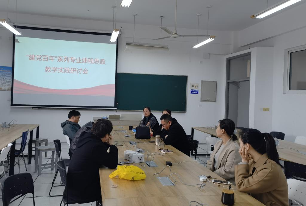 在会上,王莉结合“特色党支部”创建工作,对教工党支部书记项目的开展进行了布置落实,并组织部分党员教师结合党史学习教育,开展“建党百年”系列专业课程思政教学实践研讨。