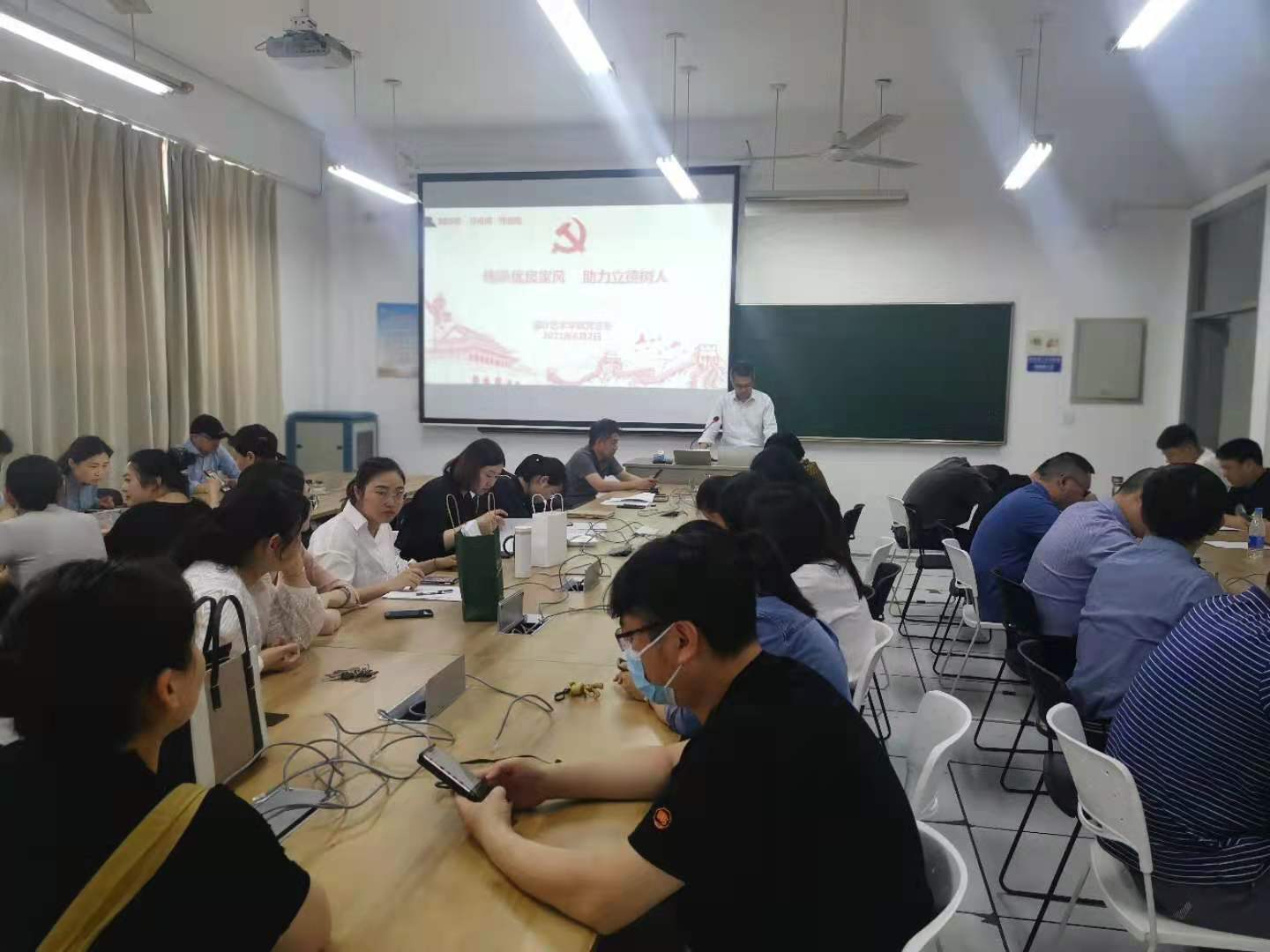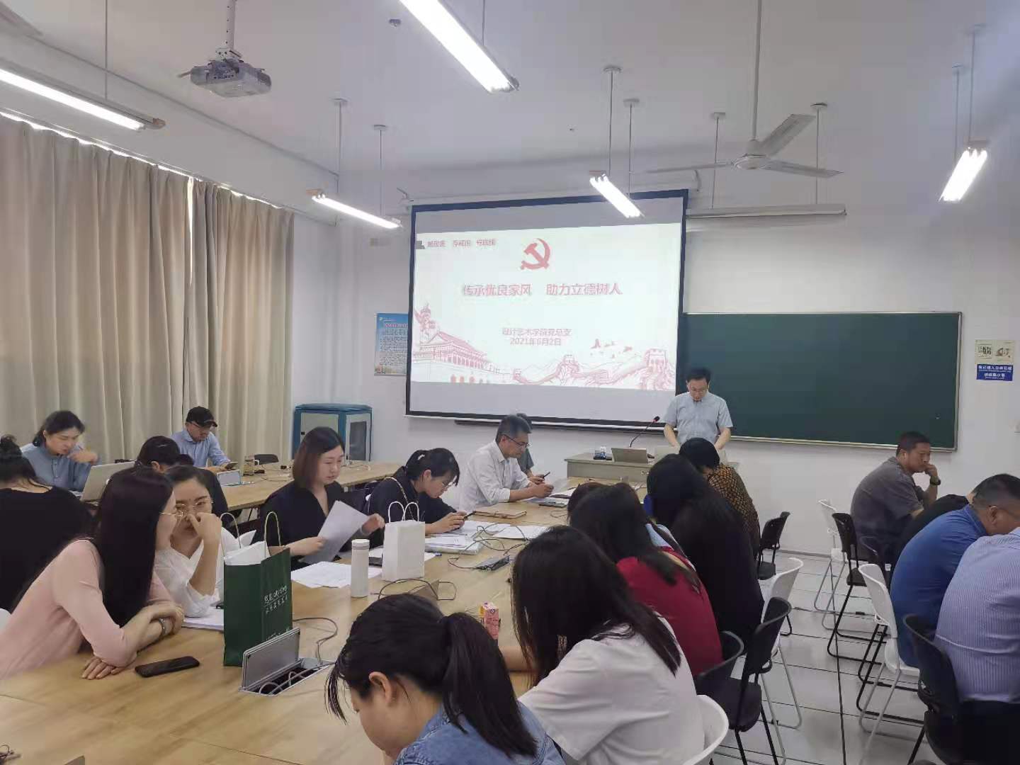 会上,学院副院长顾晓卉简要介绍了教育部关于《高等学校课程思政建设指导纲要》的基本内容。她指出,全面推进课程思政建设是落实立德树人根本任务的战略举措,要将课程思政融入课堂教学全过程,所有教师必须提升自己课程思政建设的意识和能力,全面提高人才培养质量。随后朱金华老师与参会人员一起分享了他学习《习近平总书记教育重要论述讲义》的体会,就如何在实际工作中贯彻全国、全省教育会议工作精神,加强师德师风建设,落实立德树人根本任务谈了自己的学习心得。最后,党总支副书记杨军根据“510”思廉月工作安排,为全体教职工做了题为《传承优良家风 助力立德树人》的专题讲座,他为大家讲述了习近平总书记关于家风的论述,用典型的家风故事激励教育教职工,指出教师要加强自身修养,以渊博的知识培养人、以科学的方法引导人、以完善的人格唤醒人、以优雅的气质影响人,切实担负起传道解惑的责任。
