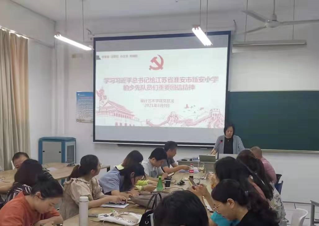 胡凌霞带领与会同志一起学习了习近平总书记给江苏省淮安市新安小学少先队员的回信全文,讲述了“新安旅行团”的英勇事迹,要求大家提高政治站位,提升思想认识,深刻领会习近平总书记重要回信的重大意义和深刻内涵,全面贯彻党的教育方针,把党史学习教育和红色文化融会贯通,引导青年学生培育积极向上的情感、态度和价值观,真正实现“立德树人”的教育目的。
