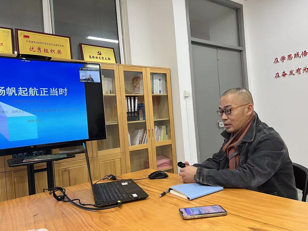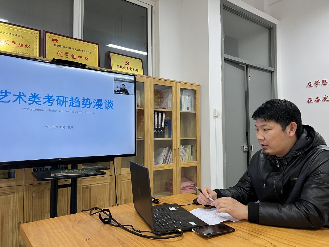 3月30日下午,在润美楼A306会议室,365英国上市集团举办线上考研动员指导暨经验交流会。党总支书记胡凌霞、副院长王文广、产品设计系主任钱峰,学工办、团委负责人出席,2021年考取研究生代表唐伟强和全体2019级学生线上参加。会议由党总支副书记杨士卿主持。