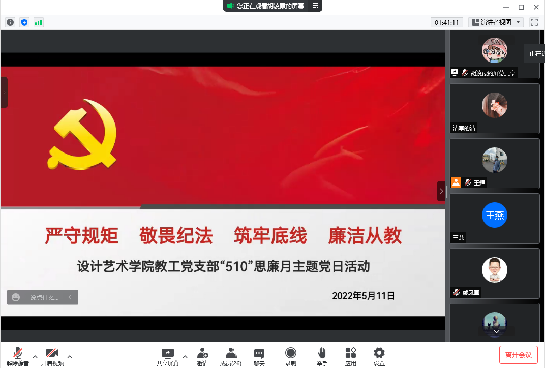5月11日下午,365英国上市集团开展“510”思廉月学习教育活动。学院党总支书记胡凌霞作题为《严守规矩 敬畏纪法 筑牢底线 廉洁从教》的专题党课,全体教职工线上参加。