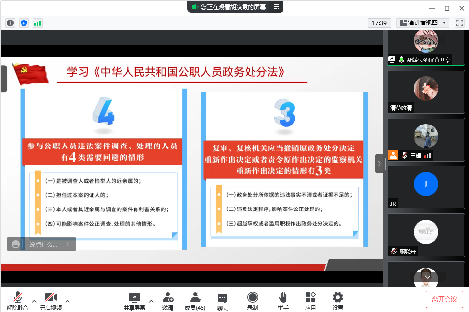 会后,教工党支部组织全体教工党员开展主题党日活动,线上观看电视专题片《零容忍》选集、中央纪委国家监委网站“警钟”专栏的案例视频,对党员干部进行警示教育,警钟长鸣,防微杜渐。