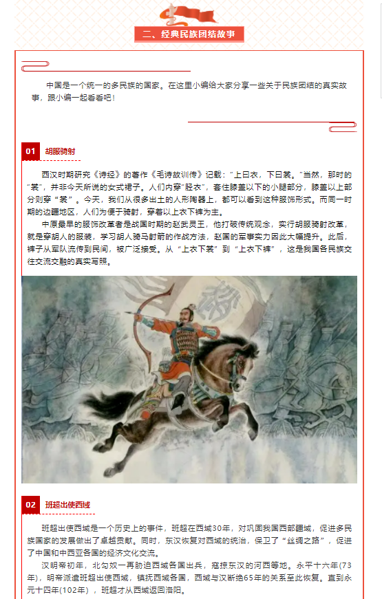学院利用官方微信公众号,推送《胡服骑射》《班超出使西域》《昭君出塞》《凉州会盟》等经典民族团结故事,帮助学生进一步了解各民族休戚与共、书写悠久历史、创造灿烂文化、培育伟大精神的历史进程,用生动事例引导学生将爱国情融入铸牢中华民族共同体意识的行动中。