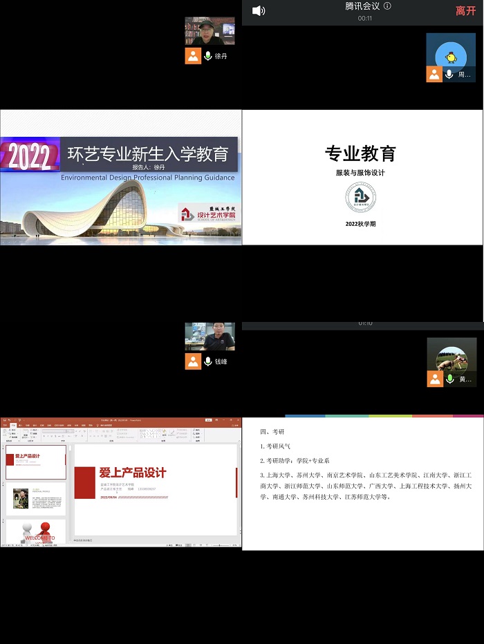 第二阶段,分专业系开展线上入学专业教育。环境设计系、产品设计系、视觉传达系、服装与服饰设计系分别开设腾讯会议室,专业系教师在线上与新生见面。各专业系主任为新生详细讲解了专业特点、学院人才培养方案、学科发展方向、专业前景、目前就业环境形势、学生成长规划等,并与学生在线上展开热烈的互动交流,使全体新同学对学校有更详实的了解,对专业有更深入的理解,对即将开启的大学生活有更明确的规划。