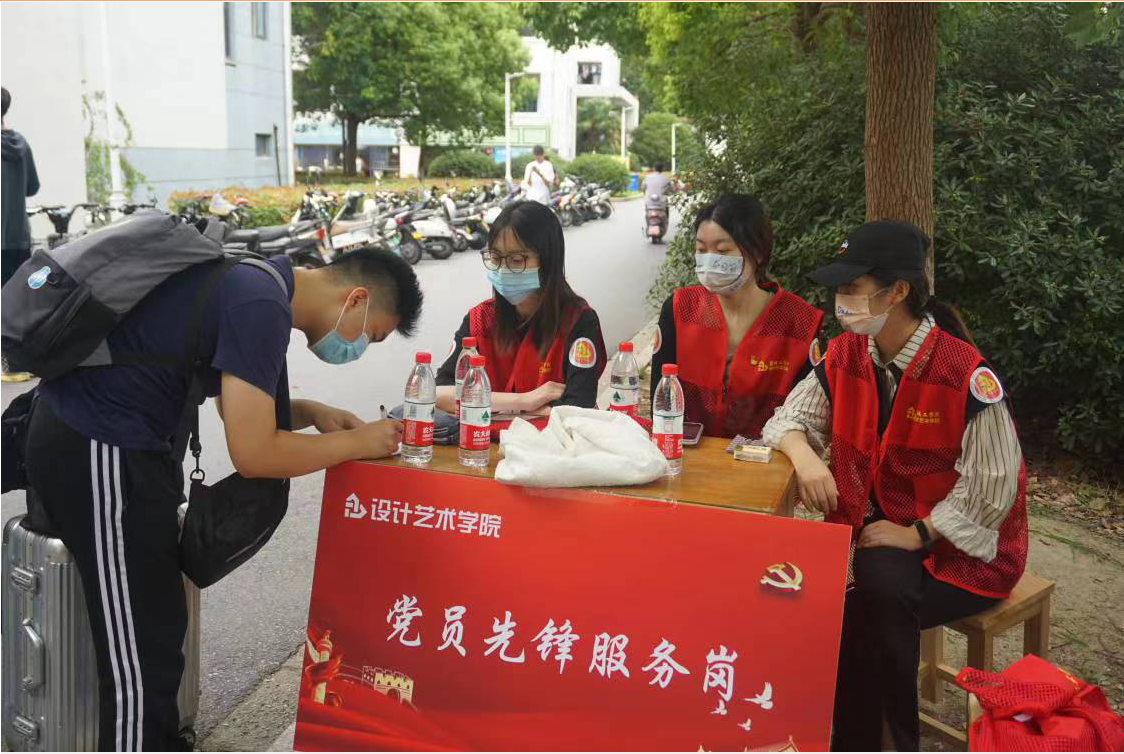 为在校园疫情防控常态化环境下,维护安全有序的报到秩序,为新生提供贴心周到的报到服务,引导广大学生党员充分发挥党员先锋模范作用,9月3日,365英国上市集团学生党支部开展“‘艺’气风发迎新生,党员先锋1+1”党员志愿服务活动,全体学生党员及部分入党积极分子以饱满的精神面貌投身迎新一线,为学院迎新工作顺利开展提供有力支持。