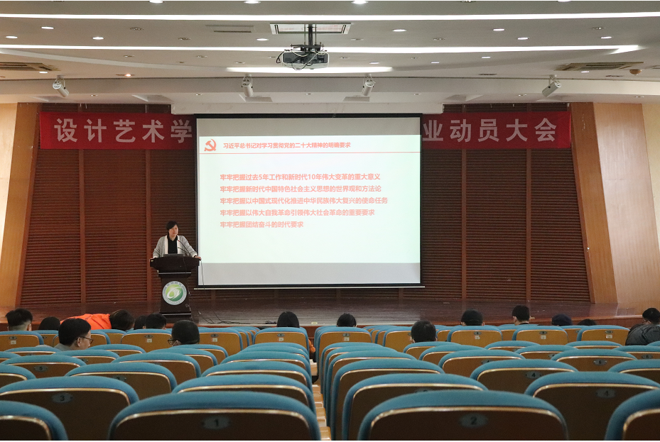 胡凌霞结合习近平总书记在二十大期间参加广西代表团讨论时的重要讲话、在二十届中共中央政治局第一次集体学习时的重要讲话、教育部党组印发的《关于教育系统深入学习宣传贯彻党的二十大精神的通知》,就如何学习贯彻党的二十大精神作了解读。她指出作为高校教育工作者,要充分认识党的二十大的重大意义,准确把握党的二十大精神的核心要义,按照习近平总书记强调的“五个牢牢把握”的要求,在全面学习、全面把握、全面落实上下功夫,深刻领悟“两个确立”的决定性意义,增强“四个意识”、坚定“四个自信”、做到“两个维护”,要坚定不移全面贯彻党的教育方针,落实立德树人根本任务,深刻把握学院所处的发展定位和肩负的时代使命,凝聚锐意进取的劲头和艰苦创业的意志,破解学院高质量发展中的挑战、阻力和矛盾,在新的征程中谱写学院高质量发展新篇章。