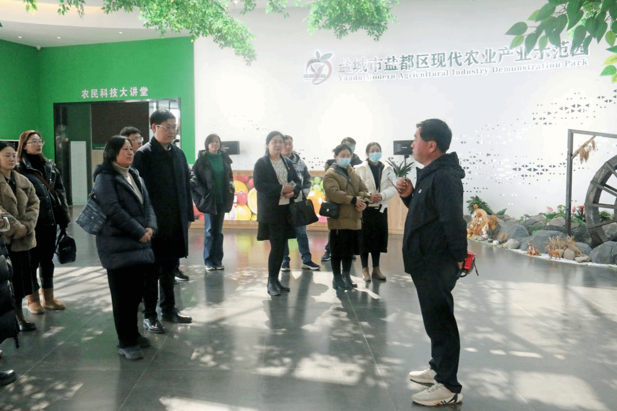 下午,大家来到位于潘黄街道新民村的盐都现代农业产业示范园参观调研,村支书董兆付详细介绍了新民村以草莓种植为主的特色农业产业的发展历程以及新农村建设的情况,双方就产学研合作方面展开深入探讨,希望在乡村品牌规划、IP文化挖掘与塑造以及电商营销等方面进行深度合作。盐都区团委书记孙杰、副书记徐晗陪同调研。