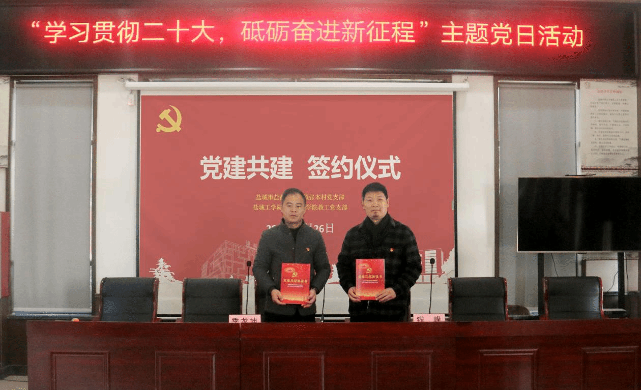 在张本村,村党总支书记季龙坤向与会人员介绍了张本村的概况,随后,教工党支部书记钱峰与季书记签订了党建共建协议,双方就基层党建工作、乡村发展规划、创新党群载体等方面达成共识,希望强化高校与乡村的沟通联系,发挥基层党组织的战斗堡垒作用,以党建共建形成合力,为地方经济社会发展贡献力量。