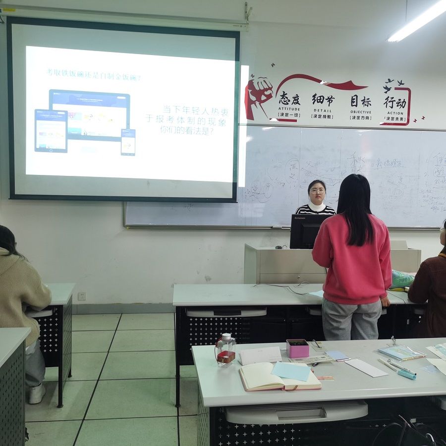 大三辅导员顾清以“我的未来不是梦”为主题召开班会。班会伊始,顾老师将同学们大一时写给未来自己的信分发给大家,引导学生思考三年来的成长与感受;随后邀请了数位以考研、就业、创业、考编等不同方向为目标的同学作分享。班会中,顾老师不时与学生进行交流互动,通过学生“自己说”和辅导员“老师说”,提升学生的主动性,帮助学生在重要的时间节点制定合理的个人规划。