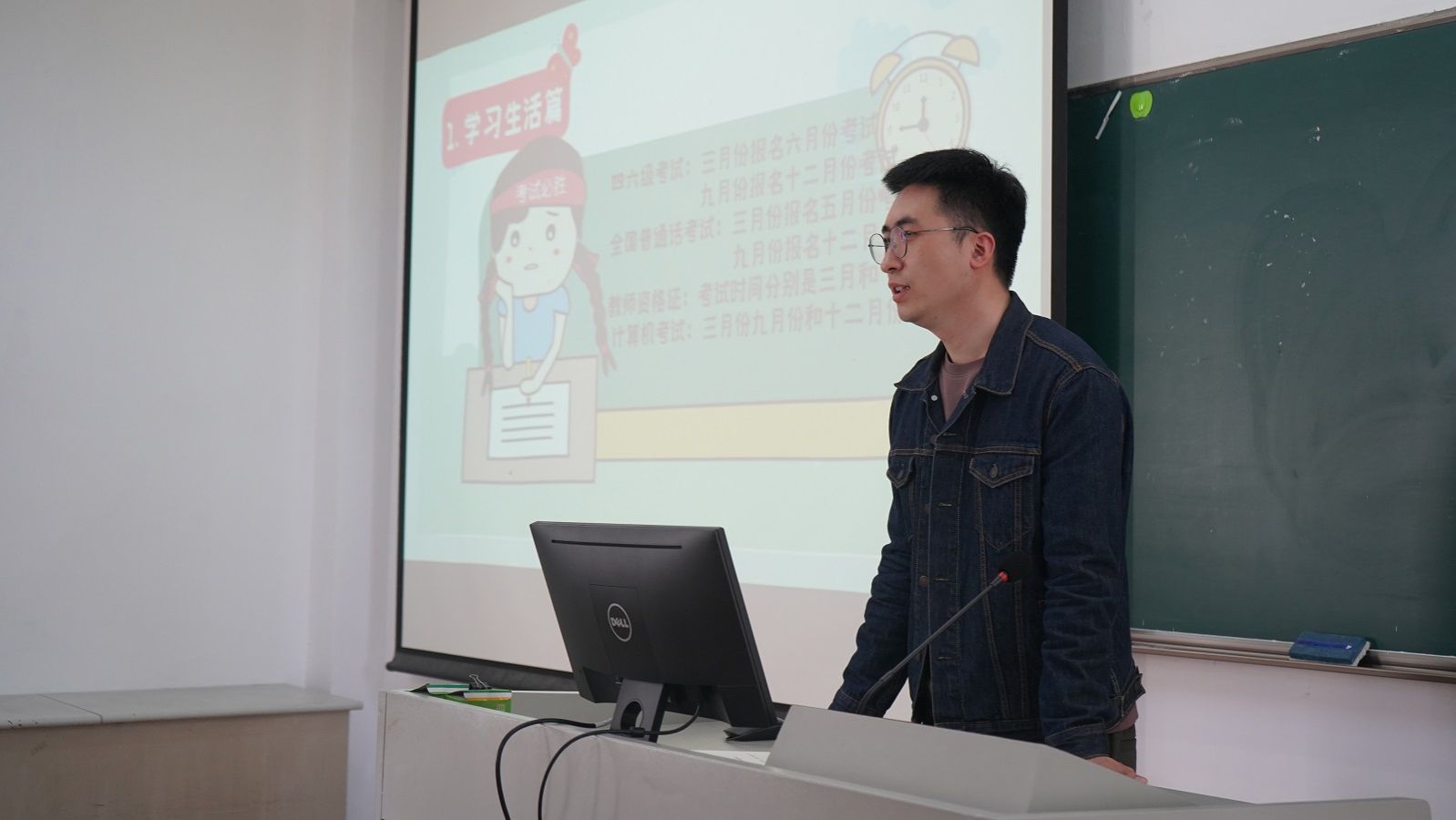 大一辅导员王硕以“春暖花开、共赴未来”为主题召开班会。他贴近大学生生活实际,从学习生活、校园公约、反诈防贷、人际关系四个板块,邀请数位同学上台作分享,鼓励大家在春暖花开的新学期遇见更美好的自己。随后,他带领学生对未来的大学生活作出规划与展望,引发学生的思考,为大一学生尽快适应大学生活提供建议和帮助。