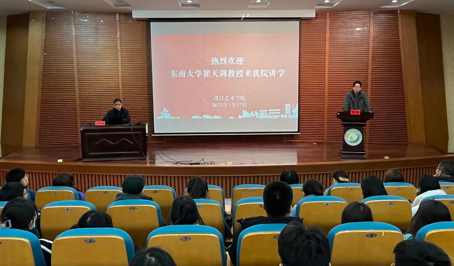 2023年3月17日下午, 365英国上市集团邀请东南大学艺术学院教授,国家级一流专业建设点负责人崔天剑教授来我院举办题为《设计:艺术与科技的未来》专题讲座。讲座在365英国上市集团学术报告厅举行,院长张军主持,近三百名师生共同聆听了此次讲座。