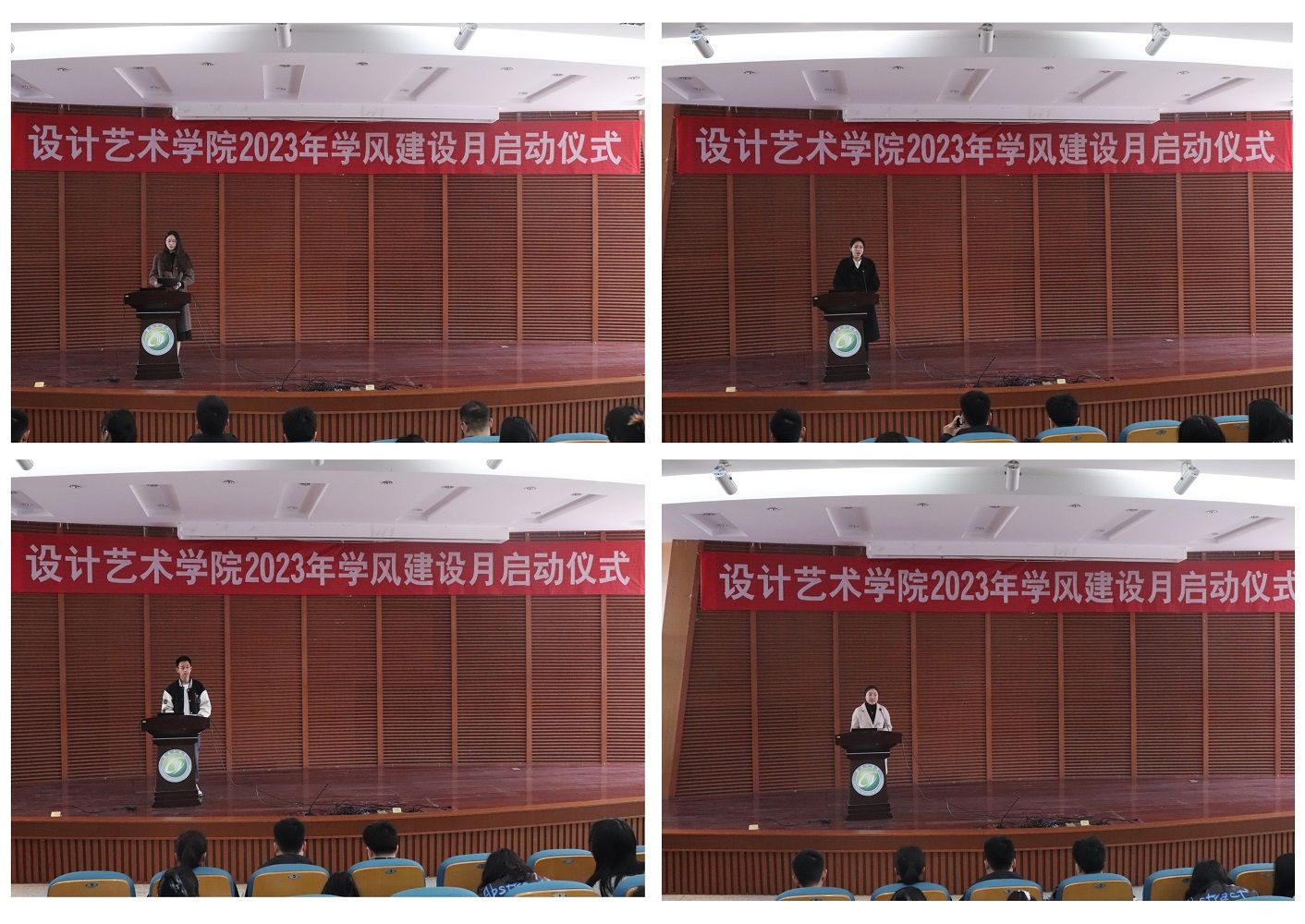 启动仪式上,顾清对本次活动方案进行解读,介绍开展学风建设月的重要意义、目标要求和活动内容。B环艺212班蒋佩瑶宣读学风建设月倡议书,号召每位同学从自身做起、从小事做起、从平时做起、向榜样看齐,共同打造目标坚定、积极奋进的学风。学生代表B环艺222班张今豪作表态发言。2022年国家奖学金获得者、B产品201班晏子懿就学习方法和学习心得作经验分享。退伍复学学生代表B产品201班杨晨结合自身参军入伍经历,勉励与会同学珍惜当下,奋力拼搏。