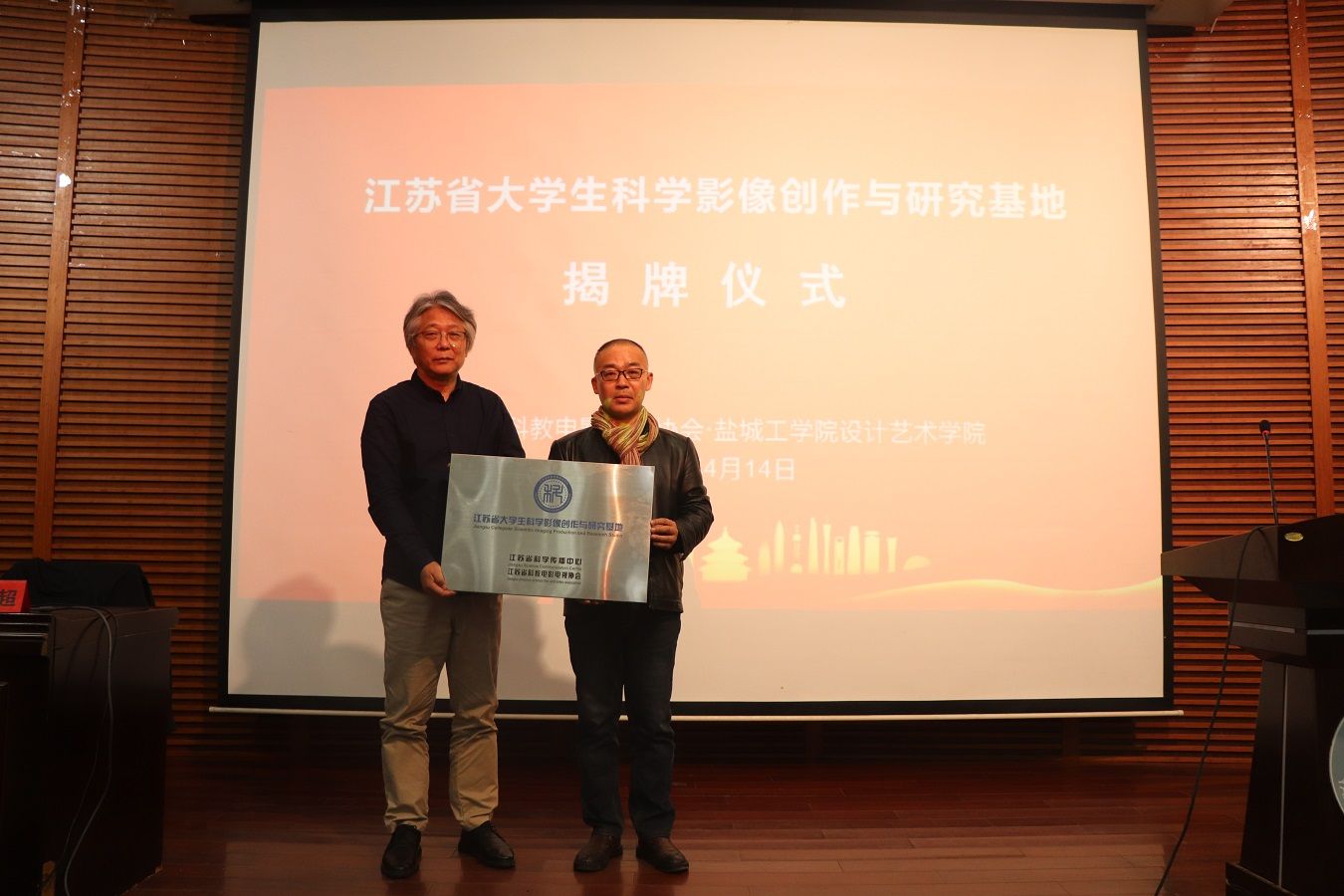 讲座后,张学超教授与王文广副院长共同为《大学生科学影像创作基地》揭牌,通过设立基地后期不断丰富学生科学影像创作。