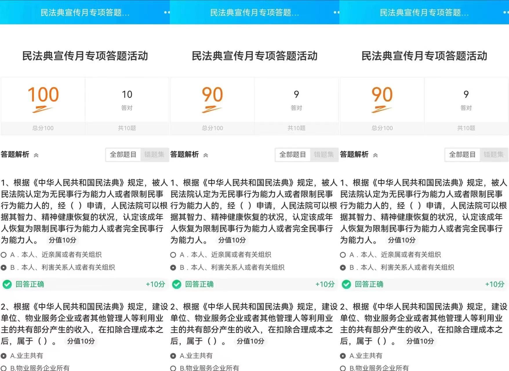 三是举办竞赛答题齐参与活动。大一大二二百余名同学积极参与开展民法典知识竞赛活动,把民法典专项答题作为普法工作的重点,调动起学生学法普法的热情,达到以赛促学的目的。