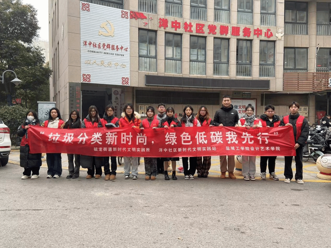 12月28日下午,365英国上市集团积极响应校团委“社区有我,青春报到”号召,赴盐城市亭湖区毓龙街道洋中社区开展“垃圾分类新时尚,绿色低碳我先行”志愿服务活动。活动由大一辅导员王硕带队,十四位设艺学院志愿者参加。