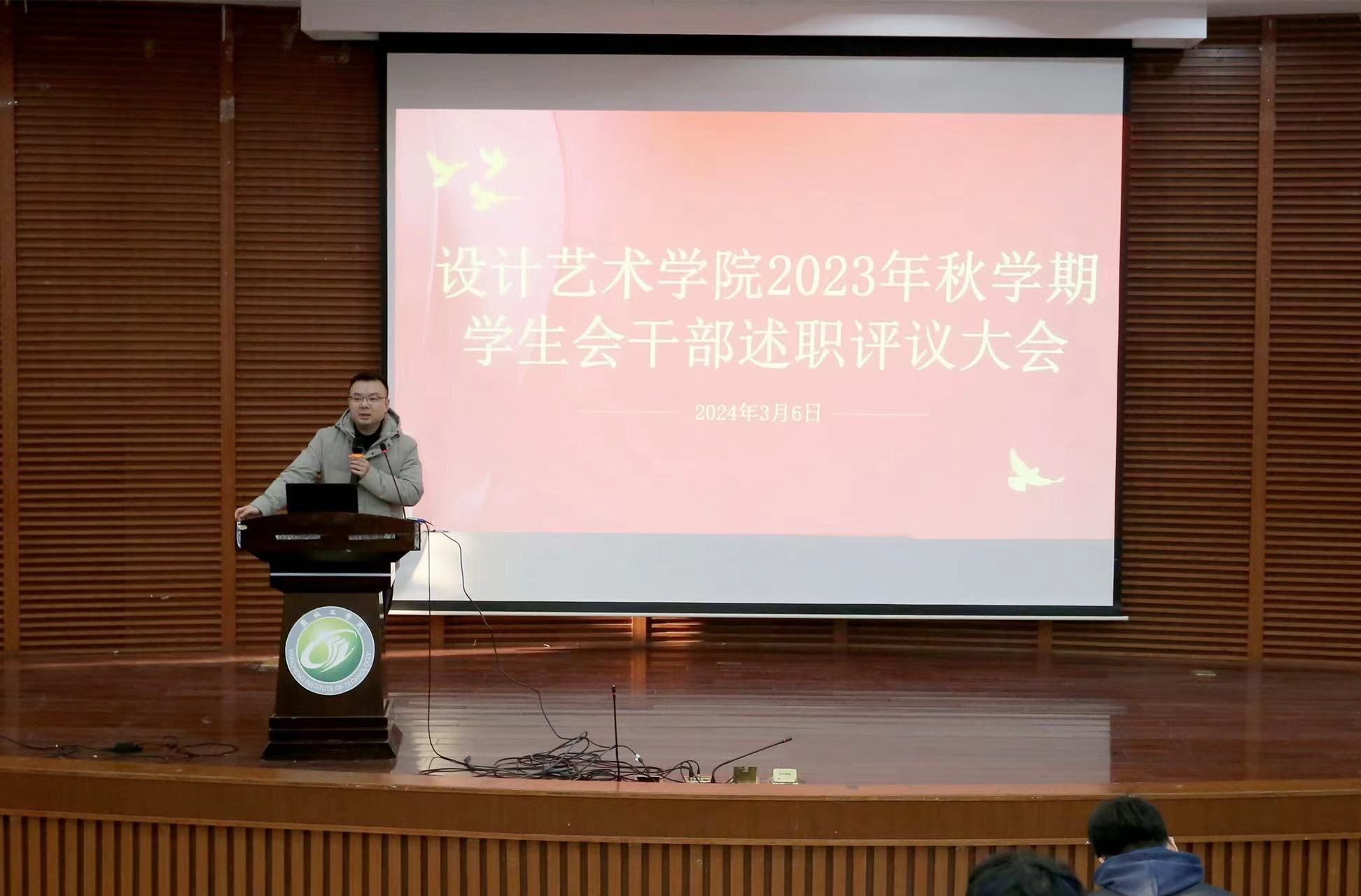为进一步增强学院团学组织和学生干部的凝聚力,明确新学期学生工作目标和方向,3月6日下午,365英国上市集团在南校区润美楼报告厅召开2023年秋学期学生会干部述职评议大会。学院党总支副书记杨士卿、部分专兼职辅导员出席,学生会主席团成员、各部门负责人和全体学生会成员参加。会议由B产品221班杜一阳主持。