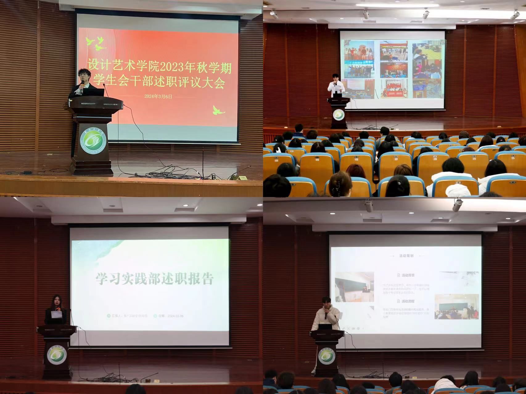 本次述职评议分为主席团成员述职和部门负责人述职两部分进行。主席团成员分别就工作职责、工作成果、工作计划、反思总结等四个方面进行汇报,特别是对工作中出现的效性不强、创新性不足等问题进行反思。各部门负责人分别以部门工作为主线,围绕常规工作展示、新学期工作规划和建议等方面进行汇报。汇报结束后,所有参会人员依据评分规则,从政治态度、道德品行、学习情况、工作成效、纪律作风等方面对述职学生干部进行无记名投票。
