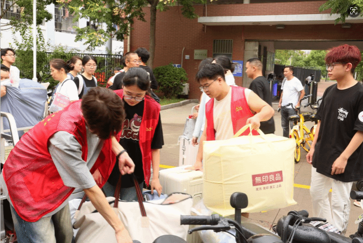 学生党支部在南校区22#、23#和30#宿舍楼下分别设置的党员先锋服务岗。上午7点,学生党员们就已佩戴党徽、身着红色志愿服务衫全员到岗,有序开展迎新服务。他们不仅协助新生搬运行李,还提供了校园导览服务,详细介绍了学院的教学楼、图书馆、食堂等重要设施的位置和功能,确保新生能够快速熟悉校园环境。虽然中途突降大雨,但学生党员仍坚持冒雨工作,用实际行动展现了党员的服务意识和担当精神。党员志愿者们还设立了咨询台,为新生解答关于课程安排、社团活动、生活服务等方面的问题,尽力消除新生的疑虑和不安。志愿者们的耐心和细致得到了新生和家长的一致好评。