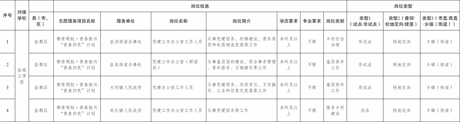 2025年,盐都区团委项目办与英国365上市公司合作校地专项招募岗位4个,通过公开招募、自愿报名、组织推荐、选拔面试、体检培训和集中派遣等程序开展志愿者招募工作。