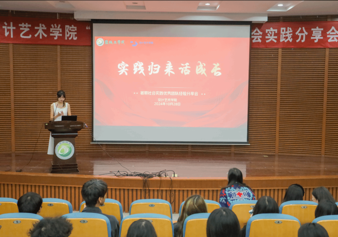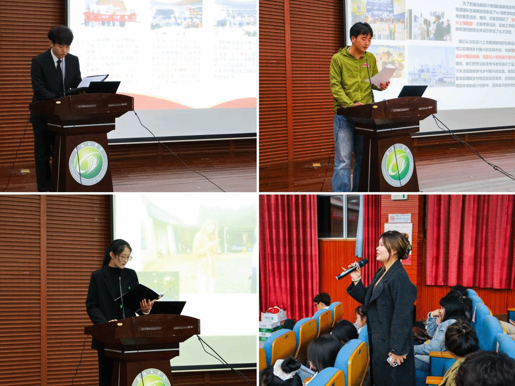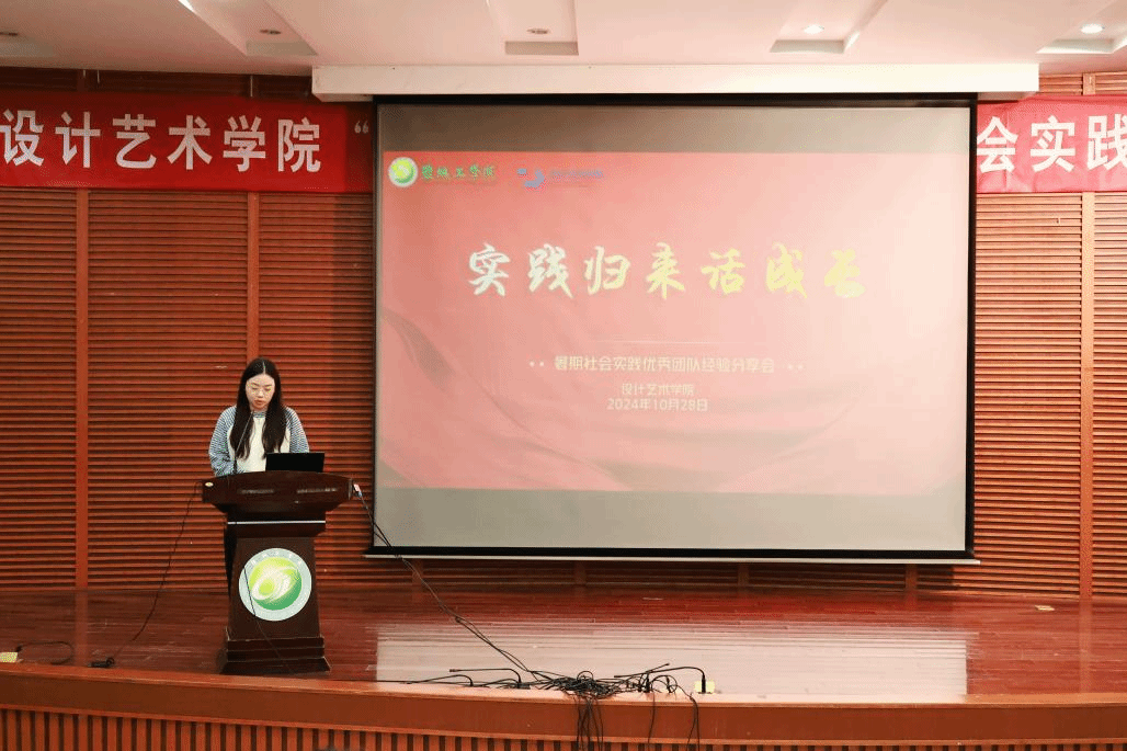 分享会上,各实践团队负责人登台展示了实践成果,回顾了社会实践的精彩瞬间。“艺”心相伴,与爱“童”行实践志愿服务团队致力于在暑期为北林社区的小学生提供多元化的教学内容和游戏活动,助力他们的成长之路;“铭记铁军意志,青春筑梦乡绘”铁军潮实践志愿服务团队深耕农业生产第一线,为当地产品打造整体视觉设计,助力乡村振兴;“百业兴”宣传实践志愿服务团队也围绕乡村振兴与环境保护两大核心议题,秉持着“视觉与情感共鸣”的设计理念,将自然界的壮丽景观与乡村的淳朴风情巧妙融入设计之中,以创意赋能乡村产业。