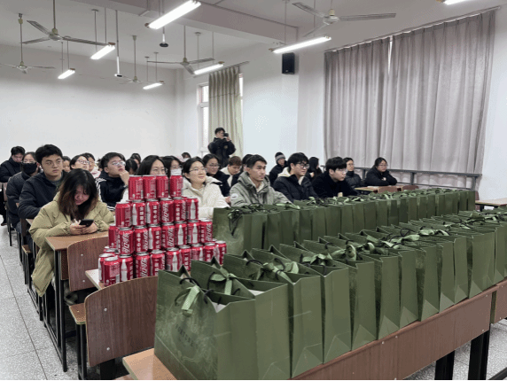 会后,张庆领、顾清、毕业班辅导员为同学们发放“解压大礼包”,同学们纷纷表示感谢学院的关心,一定努力拼搏,不辜负老师们的期望。