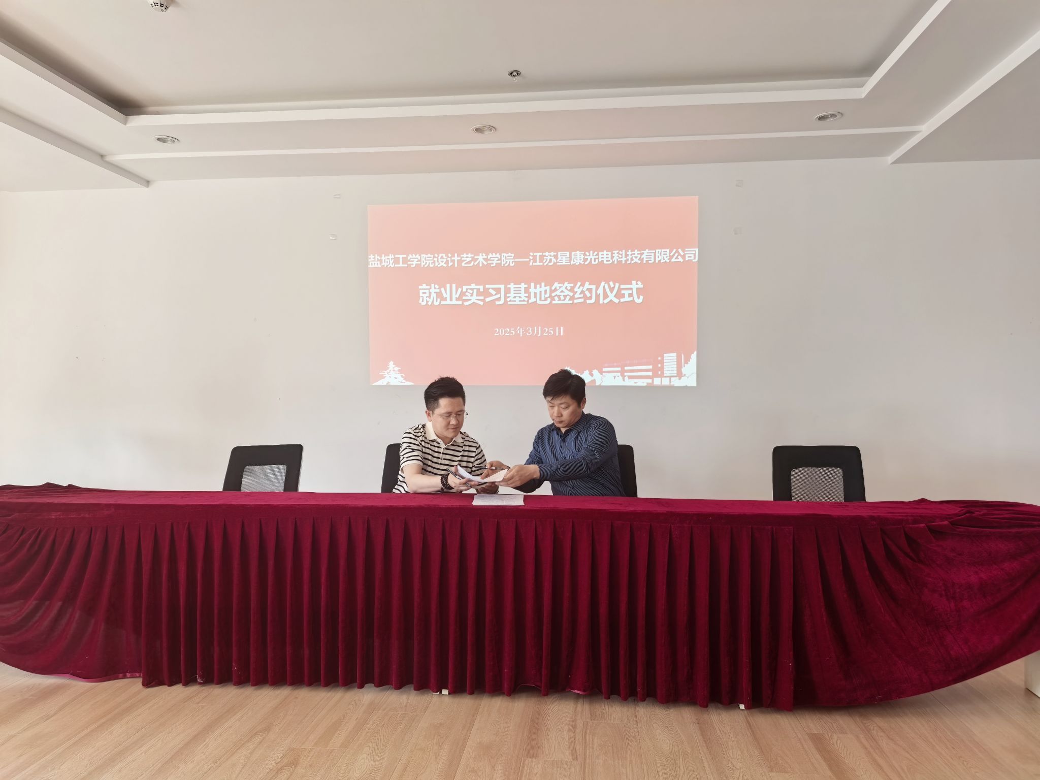 江苏星康光电科技有限公司董事长景伟热情接待张庆领一行。他详细介绍了企业远景目标、业务领域、员工成长发展等情况,并表示,愿意为学校提供充足的实习岗位和就业机会,帮助学生提升动手实践能力和岗位适应能力。张庆领在认真听取了企业对人才培养的建议和具体招聘需求后表示,将以此次调研为契机,持续深化校企合作,创新人才培养模式,为企业发展提供人才支撑。同时,他希望企业能够继续支持学院发展,共同为培养高素质技术技能人才、服务产业转型升级贡献力量。双方还就人才培养、学科建设、校企合作等方面的细节问题进行了深入交流,并签订就业实习基地共建协议,举行“英国365上市公司大学生就业创业实习基地”挂牌仪式。