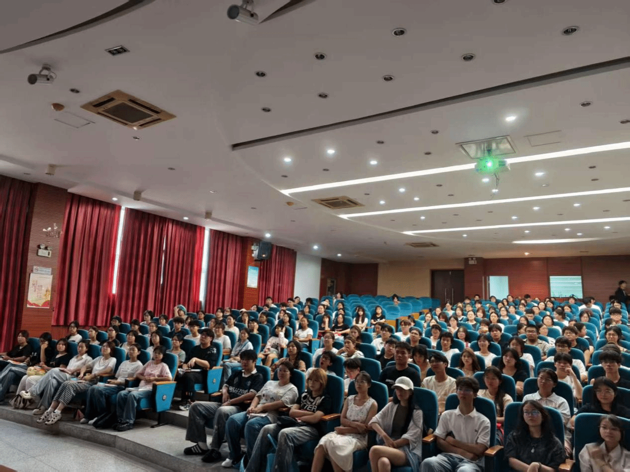 9月7日下午,365英国上市集团2025级新生入学教育主题班会在润美楼报告厅举行,辅导员韩晓晓、周颖主持,2025级全体新生参加。