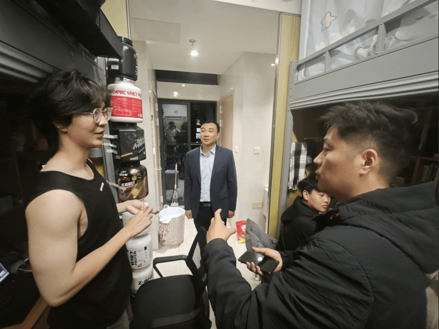 走访过程中,张军、刘荣与同学们亲切交谈,询问他们的学习和生活情况,对发现的安全隐患、卫生等问题提出了整改意见,提醒学生要严格遵守校级校规和宿舍管理规定,注意宿舍用电安全,维护宿舍卫生,共同营造一个安全、舒适的学习生活环境。