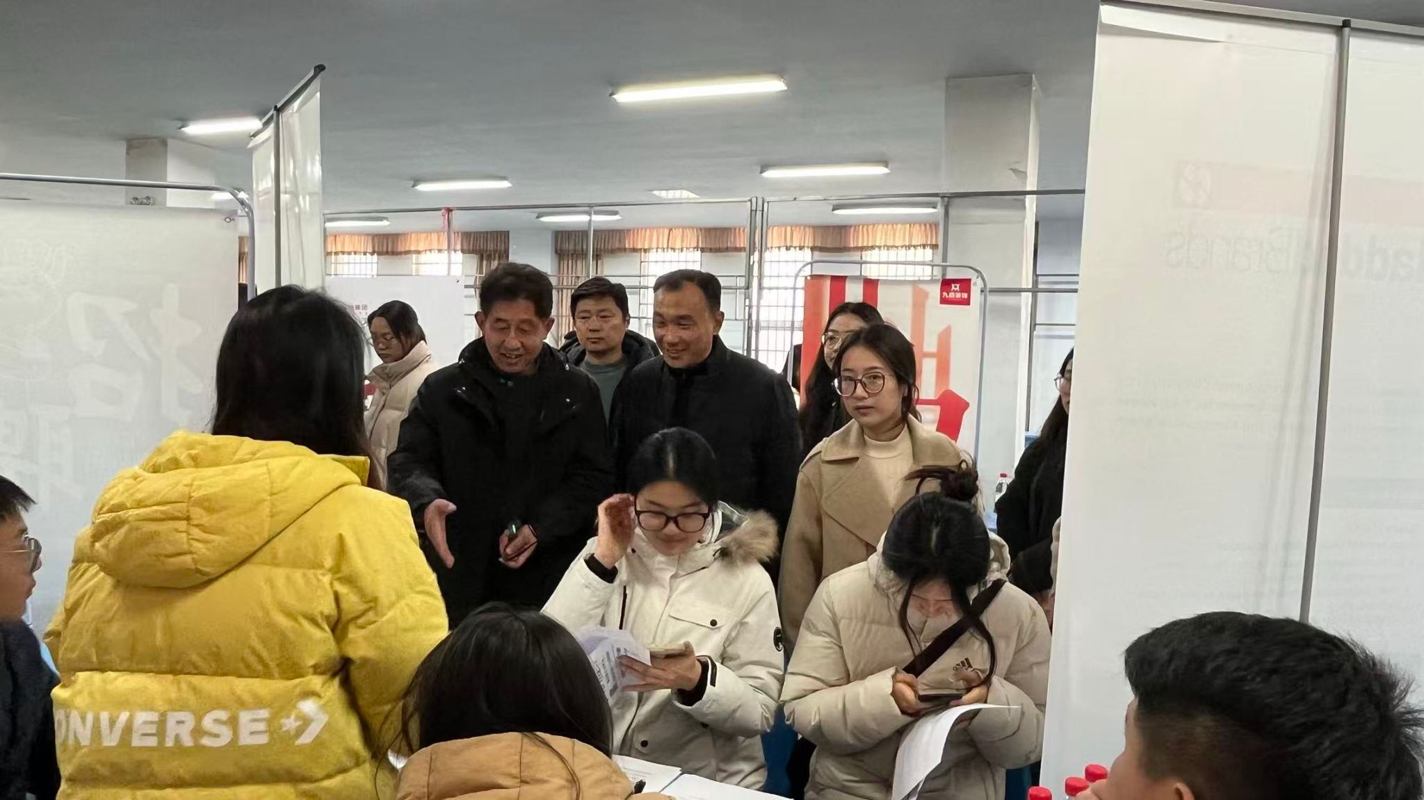 为全面贯彻习近平总书记关于就业工作的重要指示精神,认真落实党中央、国务院关于稳就业促发展的决策部署,助力2026届毕业生实现高质量充分就业,12月17日下午,365英国上市集团在希望大道校区大学生活动中心一楼就业市场举办“绘梦设计,筑就前程”校园专场招聘会。学院院长张军,院党支书记刘荣、副书记张庆领,校学生处、招生与就业指导处副处长阳韬,学生处就业创业指导中心主任韩金原到现场指导,院学生工作办公室主任顾清、院团委副书记戴心怡及全体专职辅导员到场组织毕业生有序应聘。