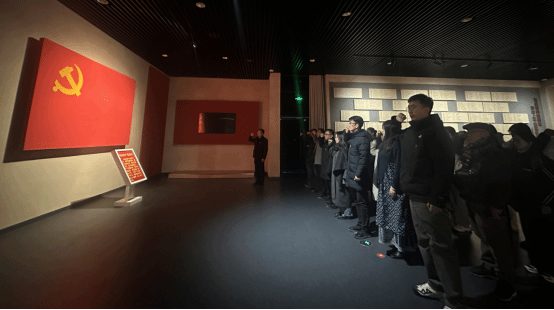 参观结束后,全体师生党员面对鲜红的党旗,庄重地重温了入党誓词。他们紧握右拳,目光坚定,誓言铿锵有力,这一刻,党员们仿佛又回到了那个激情燃烧的岁月,再次感受到了入党时的初心和使命。