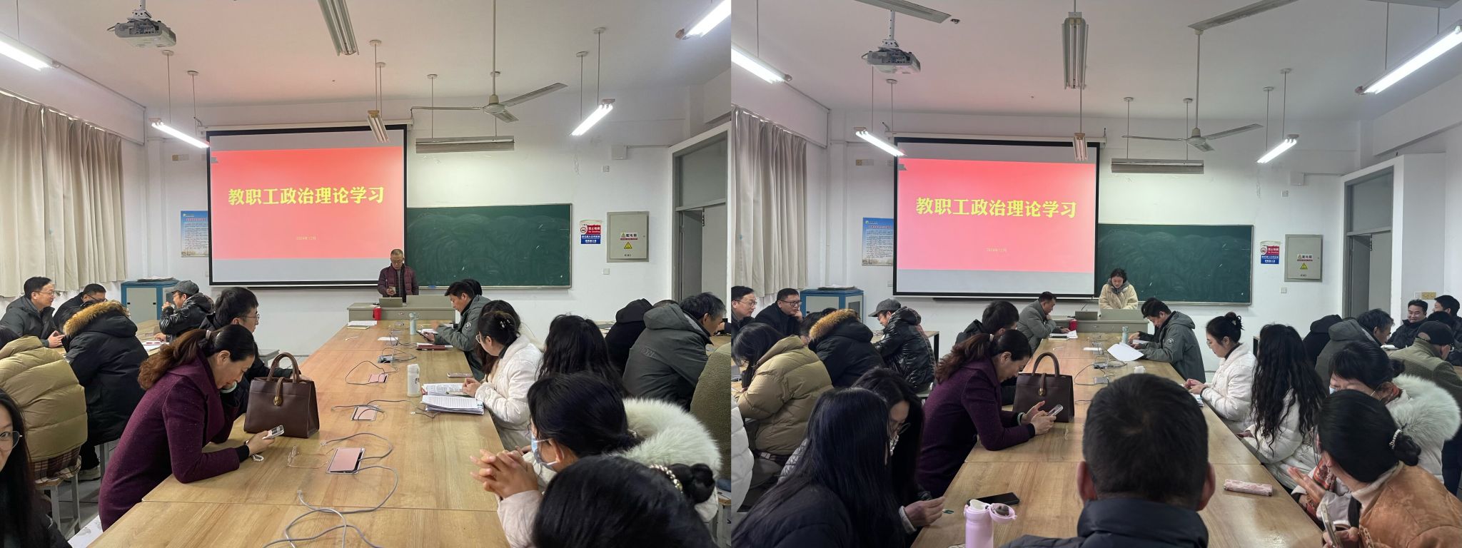 12月25日下午,在润美楼报告厅,学院召开2024年秋学期第八次教职工政治理论学习会暨院领导班子述职述廉会议。院党总支书记刘荣主持,院长张军,副院长顾晓卉、王文广,党总支副书记张庆领及全体教职工参加。