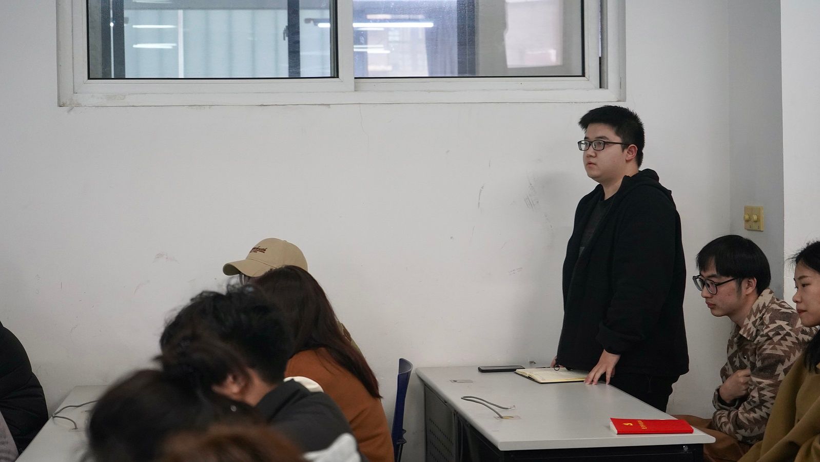 叶禎菲重点领学了习近平总书记在全国两会期间发表的系列重要讲话精神和《2023年国务院政府工作报告》,介绍了全国两会的基本情况,并结合中国青年报社社调中心调查的“2023年全国两会期间青年关注与期待的热点议案”短视频,与党员就大学生就业、毕业租房、医疗保障等问题展开热烈讨论。支部党员顾勇结合自己备考与求职过程中的实际经历,表示大学生应拓宽就业渠道,及时主动了解各地出台的就业帮扶政策,在实践中不断提升自己的专业素养和就业竞争力。