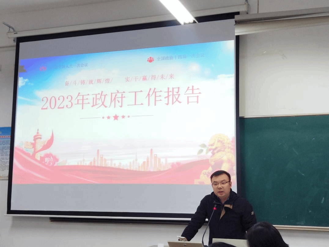 学生党支部书记、学工办副主任顾清带领全体教师学习了李克强总理代表国务院在十四届全国人大一次会议上所作的《政府工作报告》的主要内容。党总支副书记杨士卿为大家领学了十四届全国人大一次会议表决通过的《党和国家机构改革方案》,他介绍了该文件的主要内容,并从充分认识党和国家机构改革的历史和现实的三个必然性、本次机构改革方案的主要特点和核心内容等方面进行了深入解读。