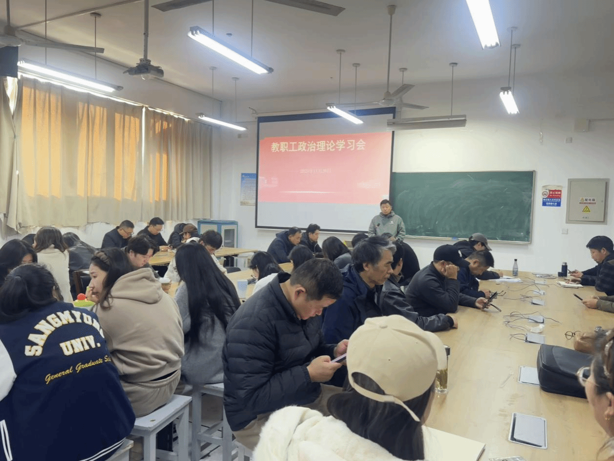 11月26日下午,学院召开教职工政治理论学习会,传达学习习近平总书记在党的二十届四中全会上的重要讲话和全会精神,习近平总书记发表在《求是》杂志上的重要文章《加快建设文化强国》。院党总支副书记张庆领主持,全体教职工参加会议。