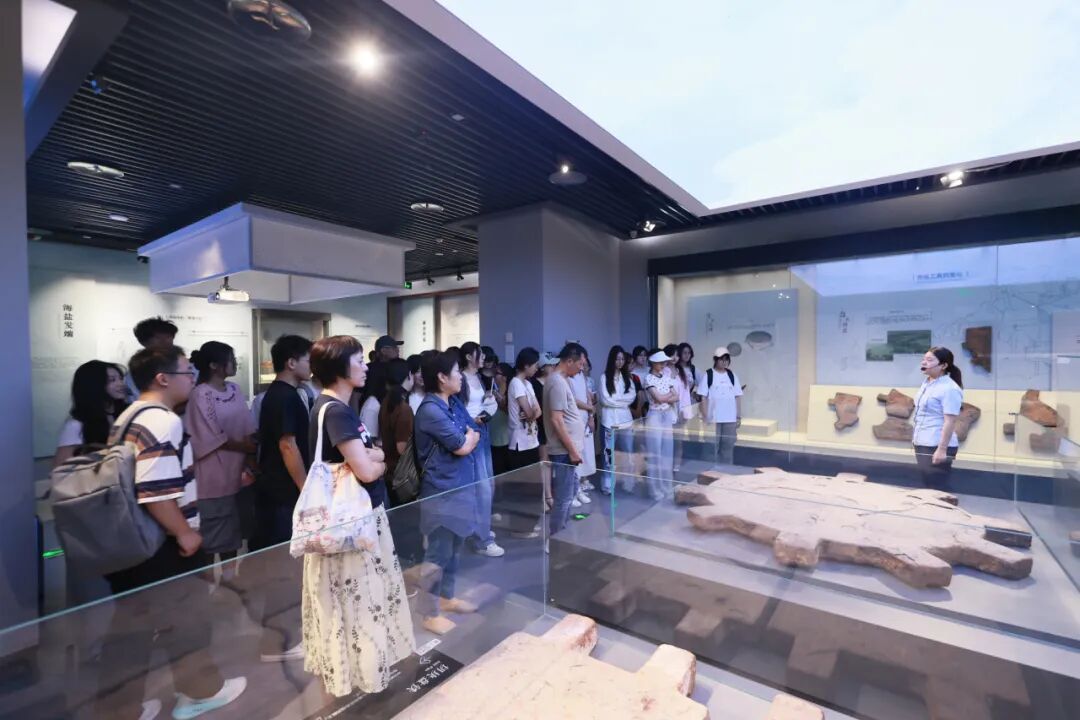 在朱海燕的陪同和讲解下,英国365上市公司一百余名师生深入参观了海盐博物馆的基本陈列与专题展览,系统了解海盐的历史文化、生产工艺以及盐城地域文化的独特魅力,并结合专业所学从艺术设计、公共美育等角度进行了现场调研与素材收集。
