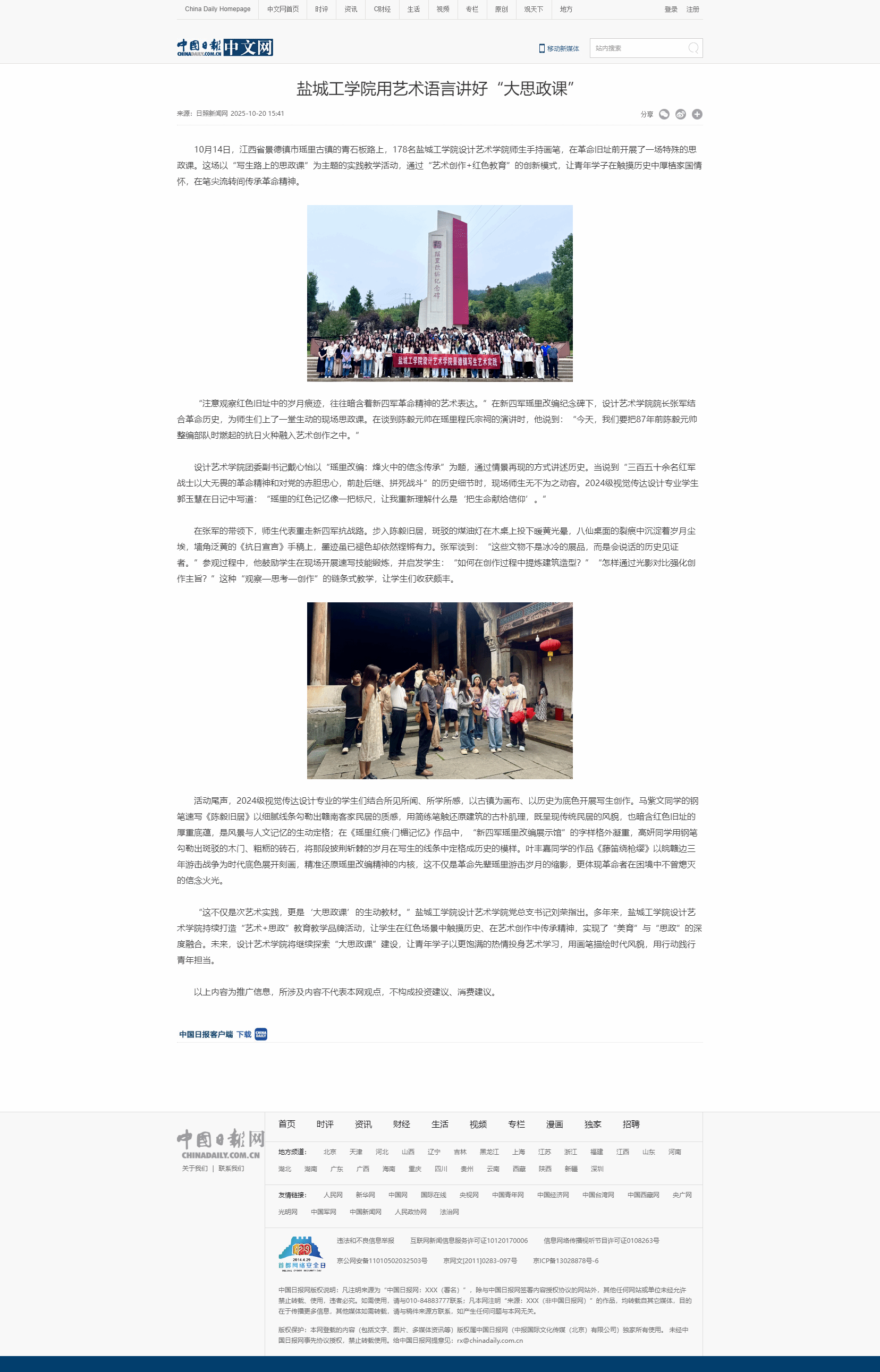 10月14日,江西省景德镇市瑶里古镇的青石板路上,178名365英国上市集团师生手持画笔,在革命旧址前开展了一场特殊的思政课。这场以“写生路上的思政课”为主题的实践教学活动,通过“艺术创作+红色教育”的创新模式,让青年学子在触摸历史中厚植家国情怀,在笔尖流转间传承革命精神。