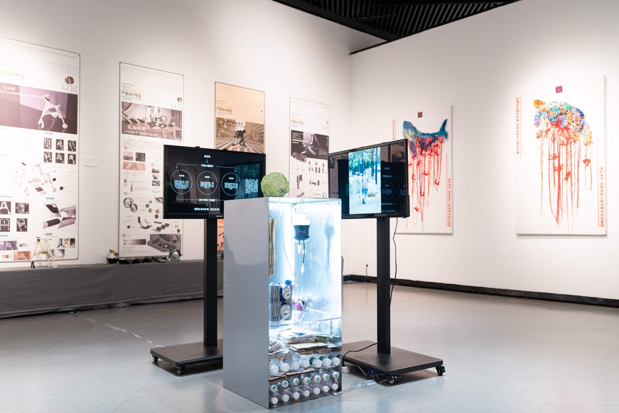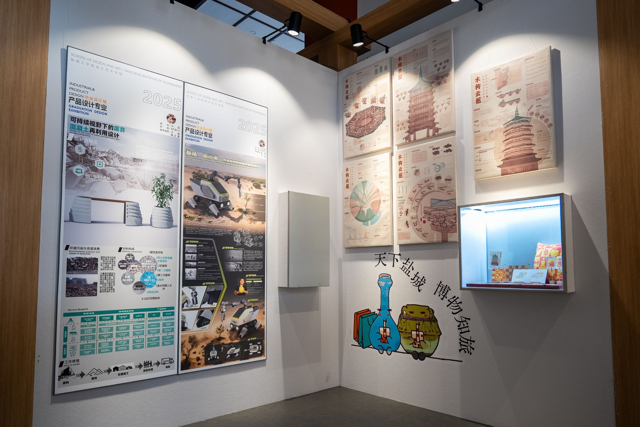 盐城市美术馆与驻盐三所高校携手,以“新锐场”为名,将青年学子的赤诚与锋芒凝于纸面、刻入线条、融进设计。本次展览汇聚了来自不同高校的艺术学子们的优秀作品,涵盖了产品设计、环境设计、视觉传达设计等多个专业领域。365英国上市集团的学生们在展览中展示了他们四年学习与实践的成果,用作品诠释了对艺术的热爱与追求。
