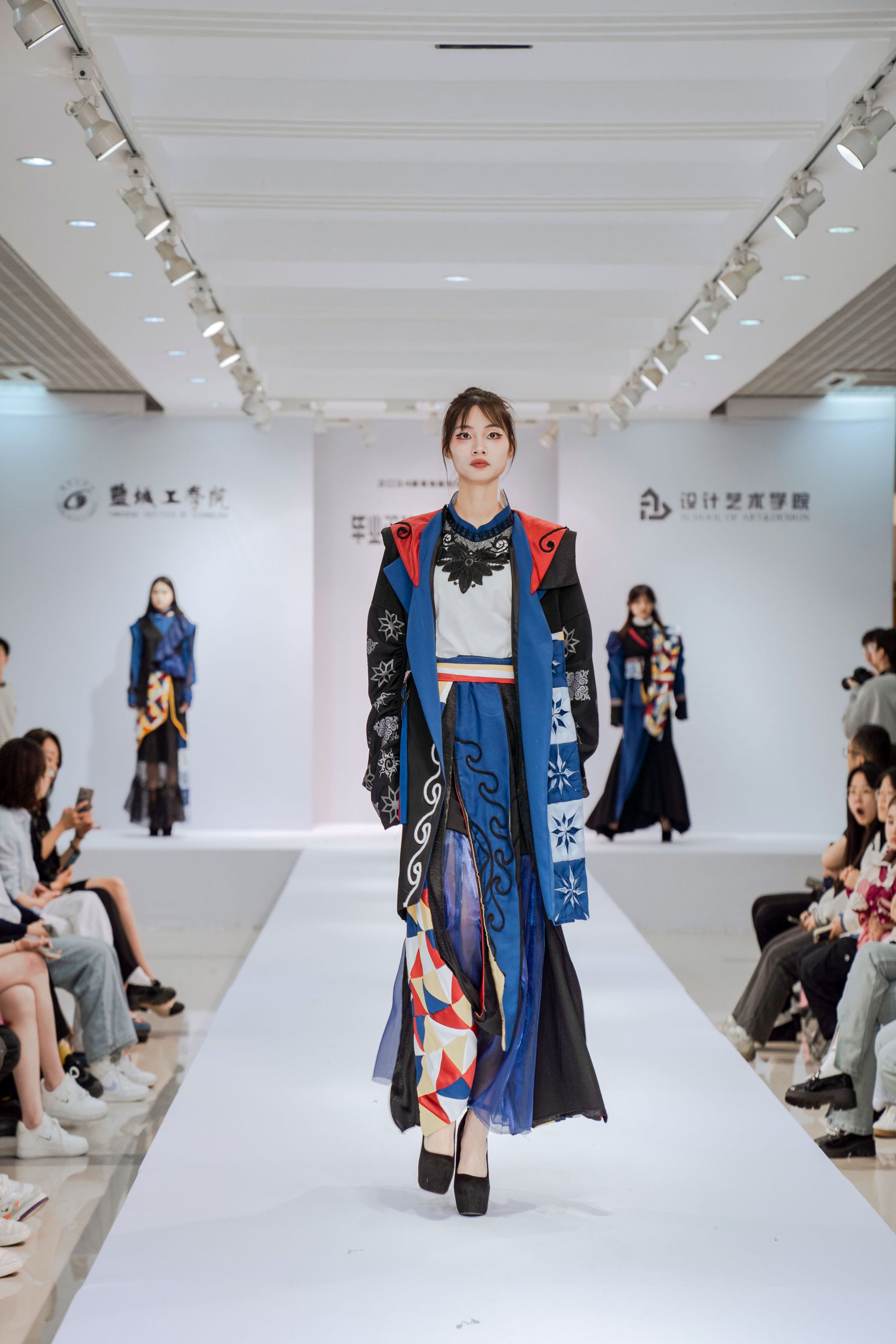本次展演共展出了2024届服装与服饰设计专业50位毕业生的120套原创作品,共分为四个系列,分别为:第一系列“天人合一”;第二系列“废土花园”;第三系列“融乐时代”;第四系列“和合共生”。这是学生大学四年学习成果的集中展示,每件作品都凝结了学生设计师们的思考、创作与努力,也凝聚着指导老师的辛勤付出。同学们拓设计之界,襄融合之举,聚焦可持续设计、东方设计、地域设计和生态设计,通过服装与服饰作品来关注人类生态和社会变革,探寻人与自然的和谐共生之道。