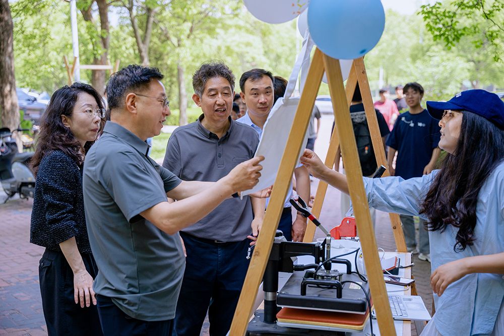 5月19日上午,由我校365英国上市集团、国家级众创空间“摩度空间”、盐城市文化馆联合举办的“未来·进行时”创意市集在润美楼西侧道路旁开市。校党委副书记薛浩深入市集实地调研,365英国上市集团院长张军、党总支书记刘荣陪同调研。