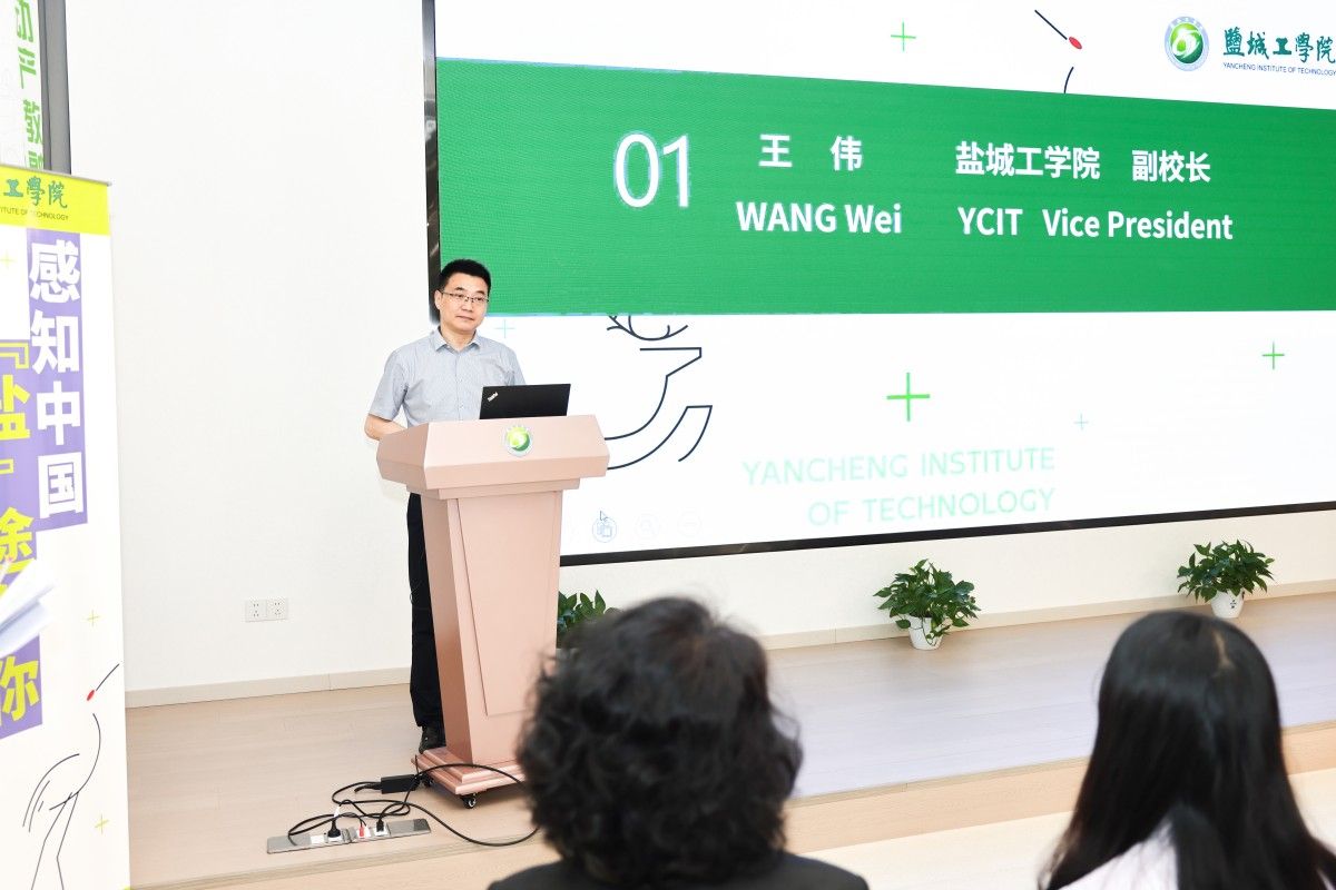 王伟对参加夏令营的师生表示热烈欢迎,并简要介绍了学校的办学特色及国际化成果。他指出,我校与英国格林威治大学有着20年的深厚合作友谊,此次格大学生来校参加夏令营既是两校教育合作的深化,更是中外青年文化对话的重要契机。本次夏令营将为学生们提供沉浸式的中国文化体验,让学生们近距离感受盐城、感受江苏、感受中国的发展脉搏。他希望大家在交流中深化了解,建立友谊,共同书写一段难忘的盐工记忆。