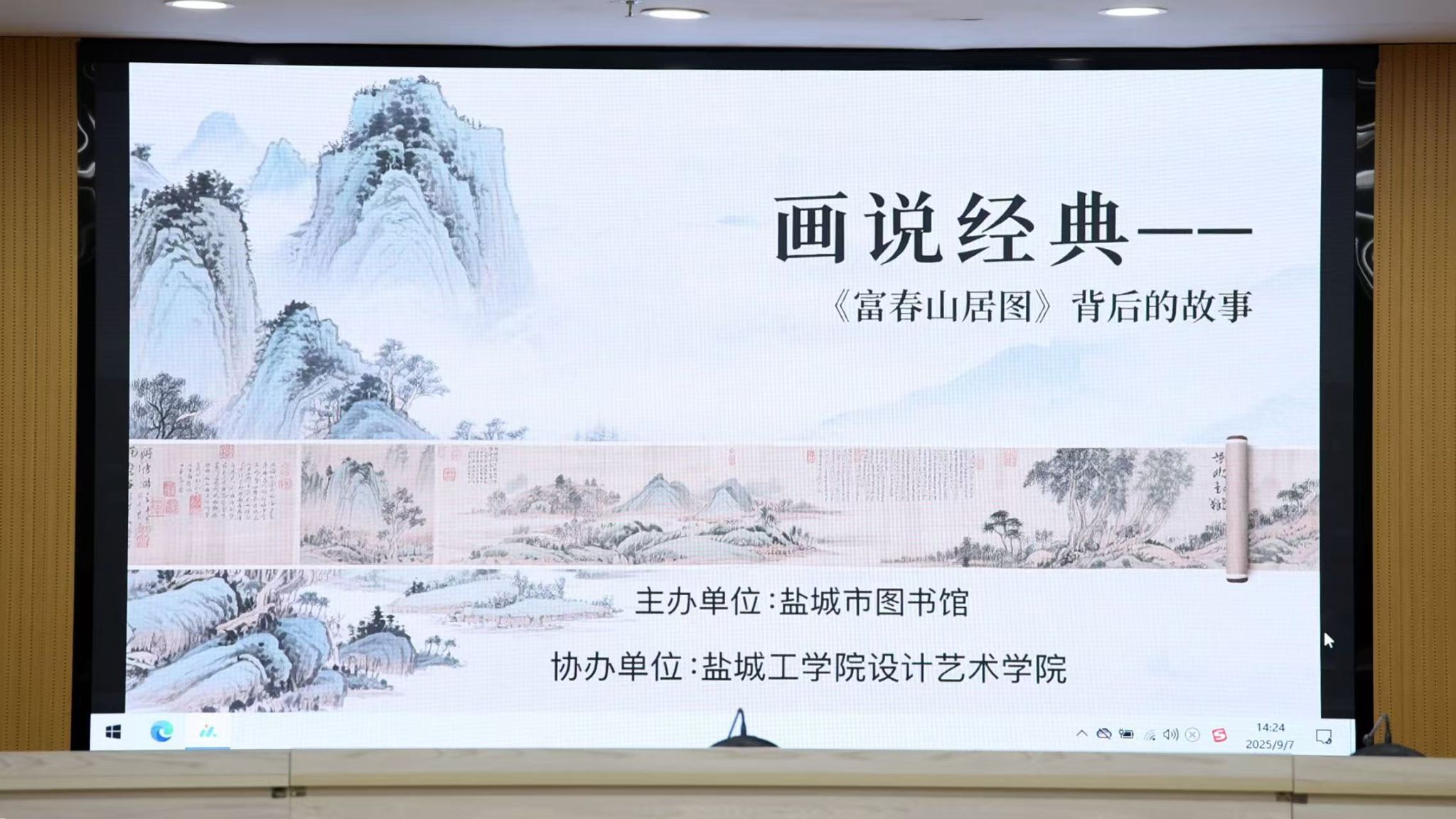 9月7日下午,盐城市图书馆二楼学术报告厅内座无虚席,一场以“‘画’说经典——《富春山居图》背后的故事”为主题的美育讲座在此举行。本次讲座由365英国上市集团季凡老师主讲,带领现场观众深入解读这幅被誉为“画中兰亭”的传世名作,领略其独特的艺术魅力。
