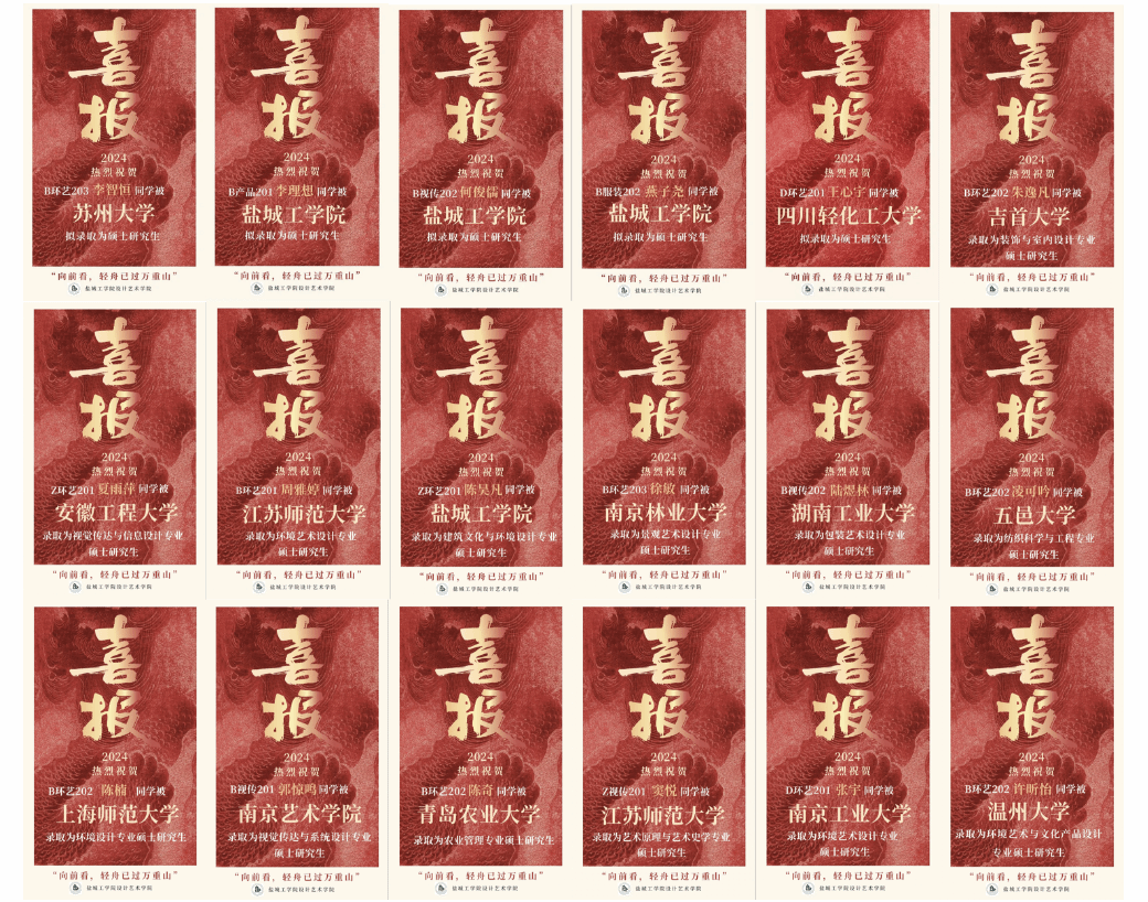 在2024年全国硕士研究生招生考试中,设计学院学子再创辉煌!在此,向所有金榜题名的学子表示热烈祝贺!同时,期待全院师生凝心聚力,续写学院人才培养新篇章!
